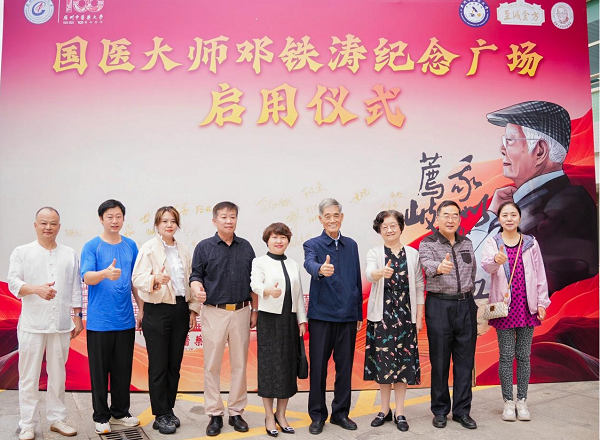 邓铁涛教授作为全国首届国医大师,他的形象和精神已经成为广州中医药大学精神文化的重要组成部分。他以毕生精力致力于中医药事业的振兴发展,成为中医药事业发展路上的一座精神丰碑。为了纪念邓铁涛教授的卓越贡献,学校决定修建国医大师邓铁涛纪念广场。值此校庆盛典之日,由广州中医药大学主办,广州中医药大学基础医学院、广州致诚金方中医药科技有限公司共同承办的,国医大师邓铁涛纪念广场于11月17日盛大揭幕。活动由广州中医药大学基础医学院单丽囡主持。